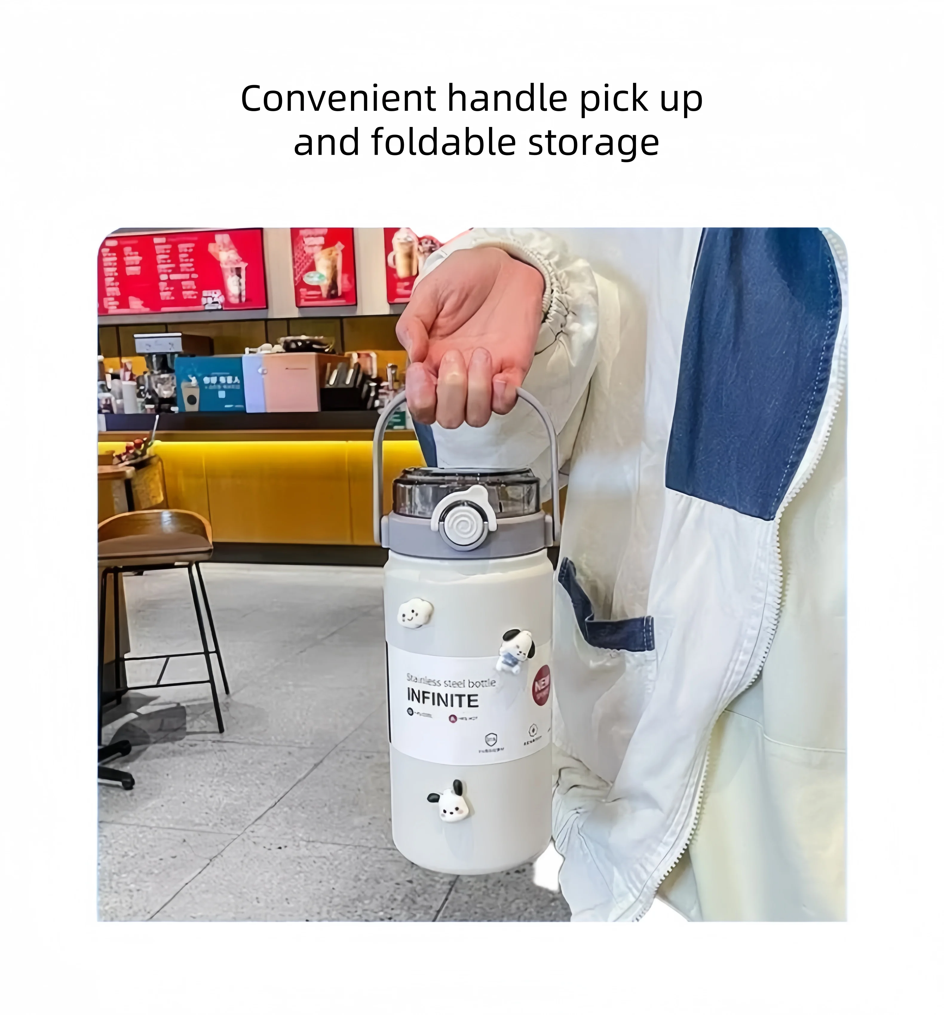 - La taza viene con un asa portátil.
