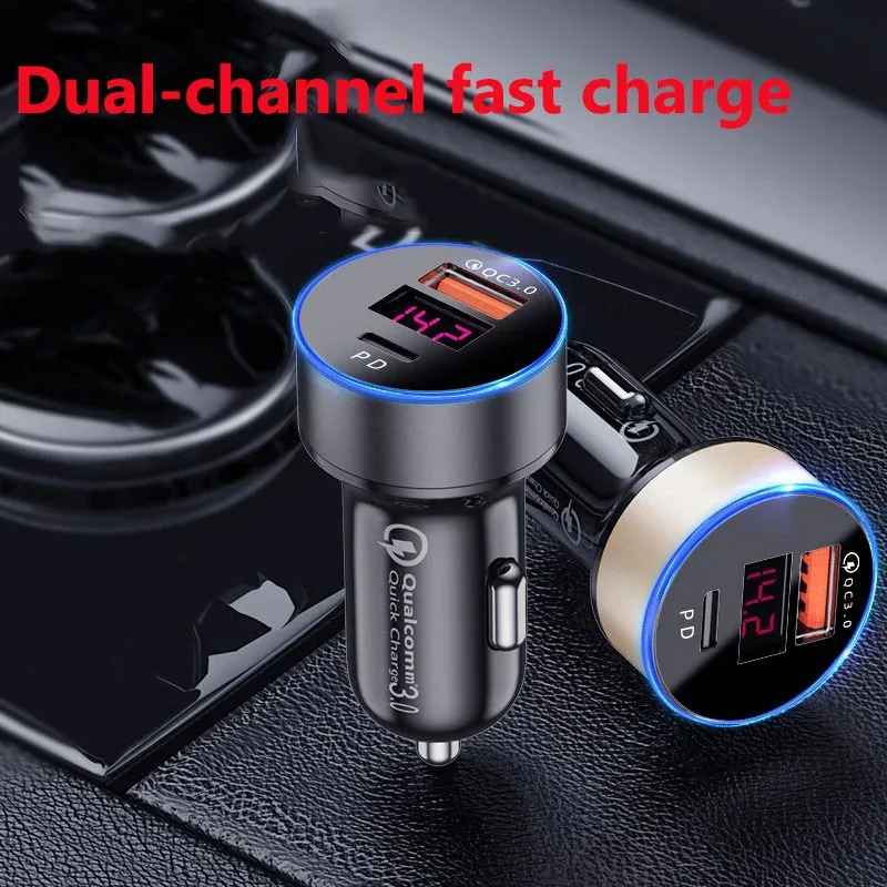 1/2pcs Car Charger, Cigarette Lighter, Smartphone Adapter, Phone Charger, Dual USB Digital Display, Voltmeter, Fast Charging