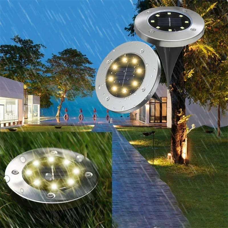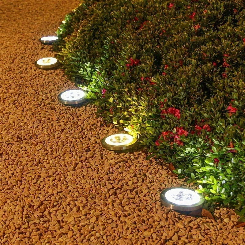 Paquete de 1/4 de luces solares para exteriores, 8 LED, disco, lámpara subterránea, foco, luz solar enterrada para decoración de jardín, césped y patio.