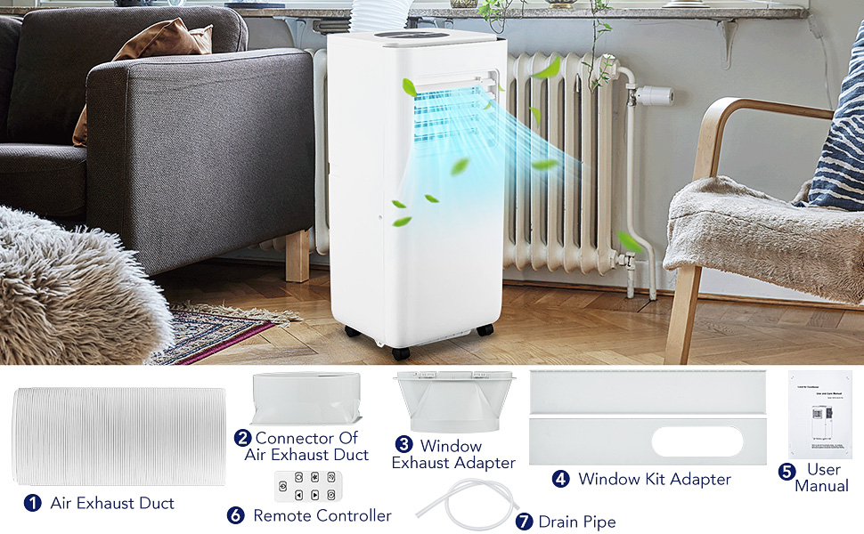 【3 modos y no solo un aire acondicionado】Para satisfacer sus diferentes necesidades, nuestro equipo cuenta con 3 modos de funcionamiento personalizados: refrigeración, deshumidificación y ventilador. Además, incorpora un sensor de temperatura que ajusta automáticamente el funcionamiento del compresor según la temperatura ambiente para reducir el consumo de energía. Además, cuenta con orificio y tubo de drenaje para drenaje continuo y manual. Incluye un kit de montaje en ventana.