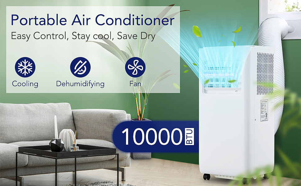 Aire acondicionado portátil de 10,000 BTU, refrigeración potente de hasta 450 pies cuadrados, unidad de aire acondicionado 3 en 1, ahorro de energía eficiente, ultra silencioso, control remoto