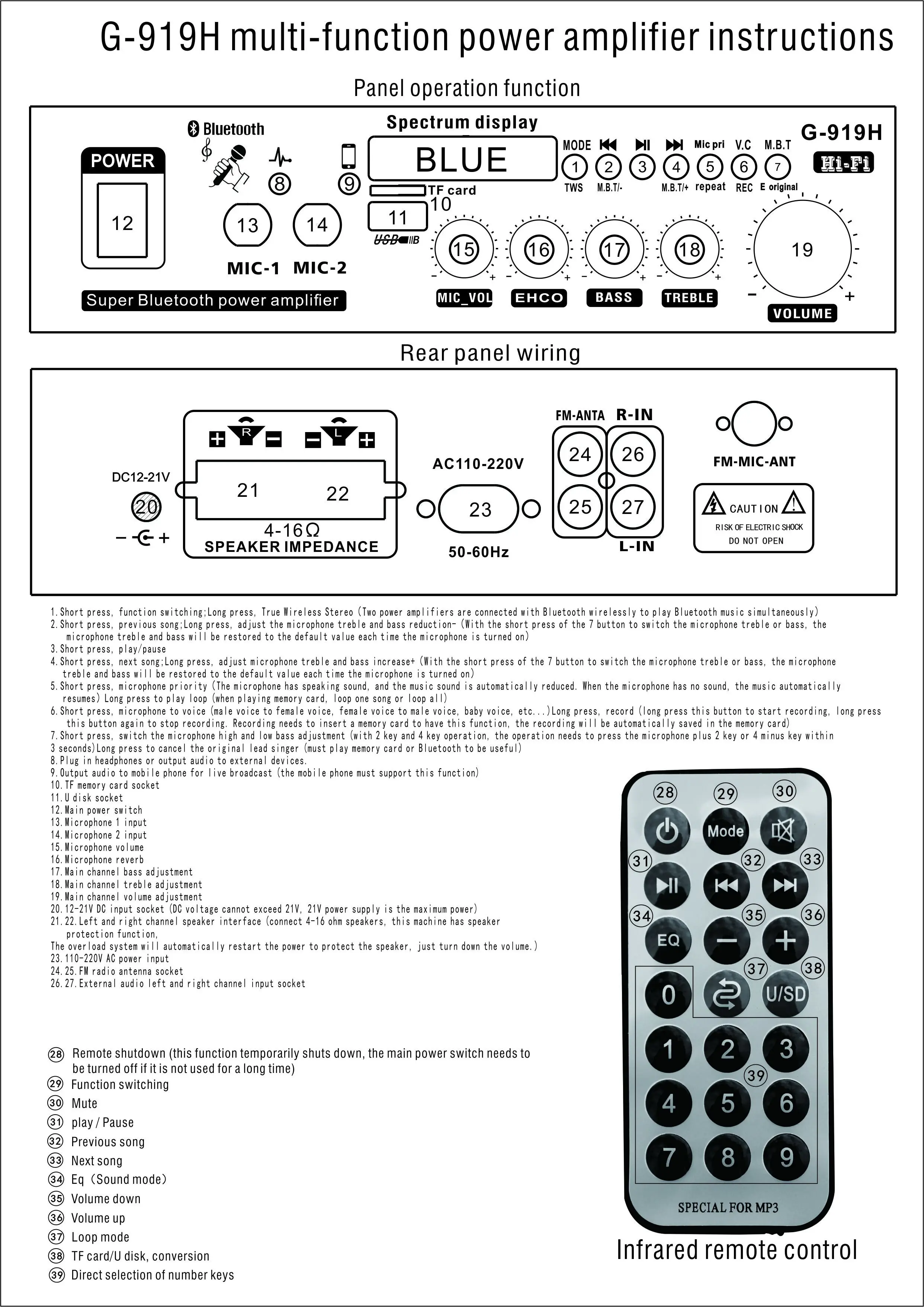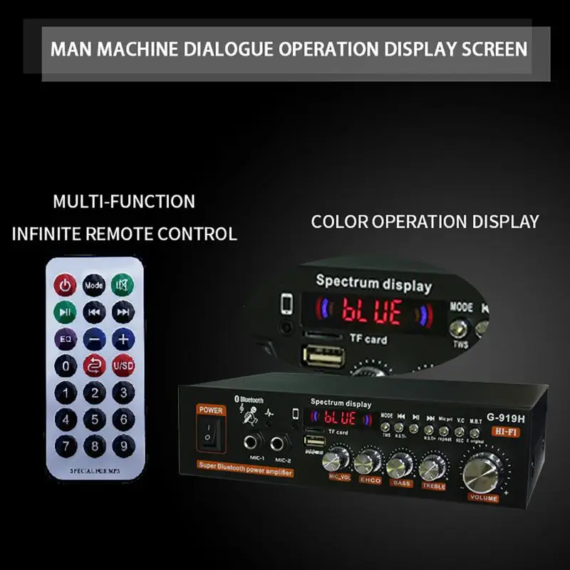 Amplificador de potencia doméstico G-919H de 1000 W, HIFI, Bluetooth 5.0, amplificador de audio, subwoofer, altavoces, 220 V/110 V, FM, USB