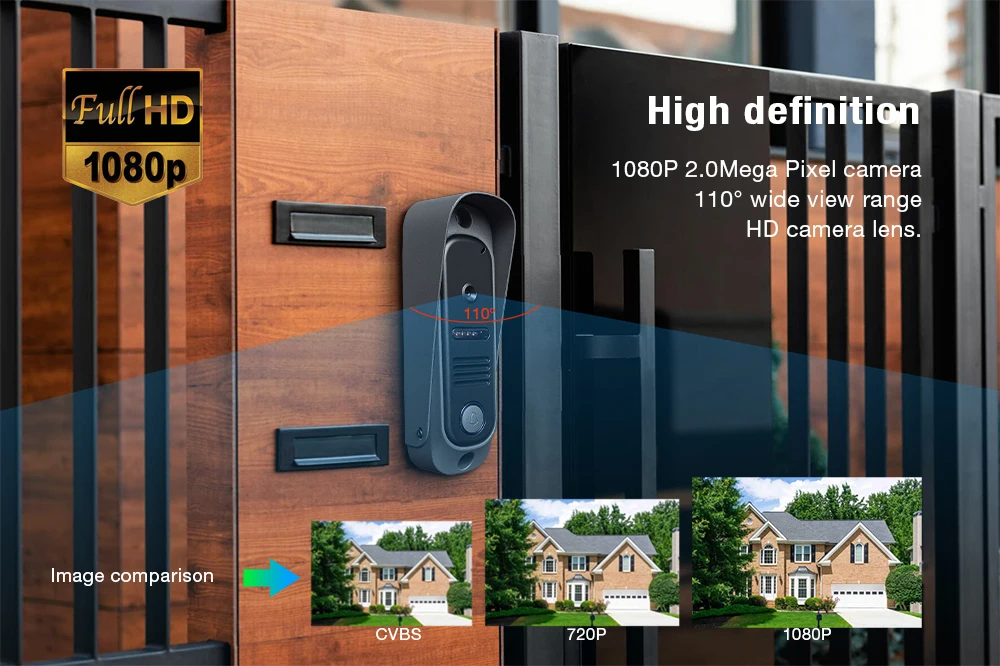 El último sistema de intercomunicación visual para casas de villas de alta definición 1080P, con menú táctil en pantalla completa, chips de procesamiento central de última generación y soluciones de procesamiento de imágenes, todo fabricado en China. Su precio es un 20 % inferior al de productos similares. Panel de llamada integrado de metal fundido a presión, desbloqueo, intercomunicador, monitoreo, grabación de video, alarma de detección de teléfono móvil, control remoto de aplicaciones móviles y otras funciones.