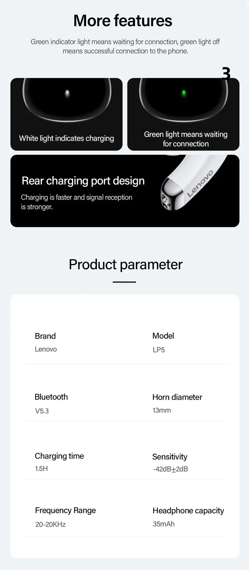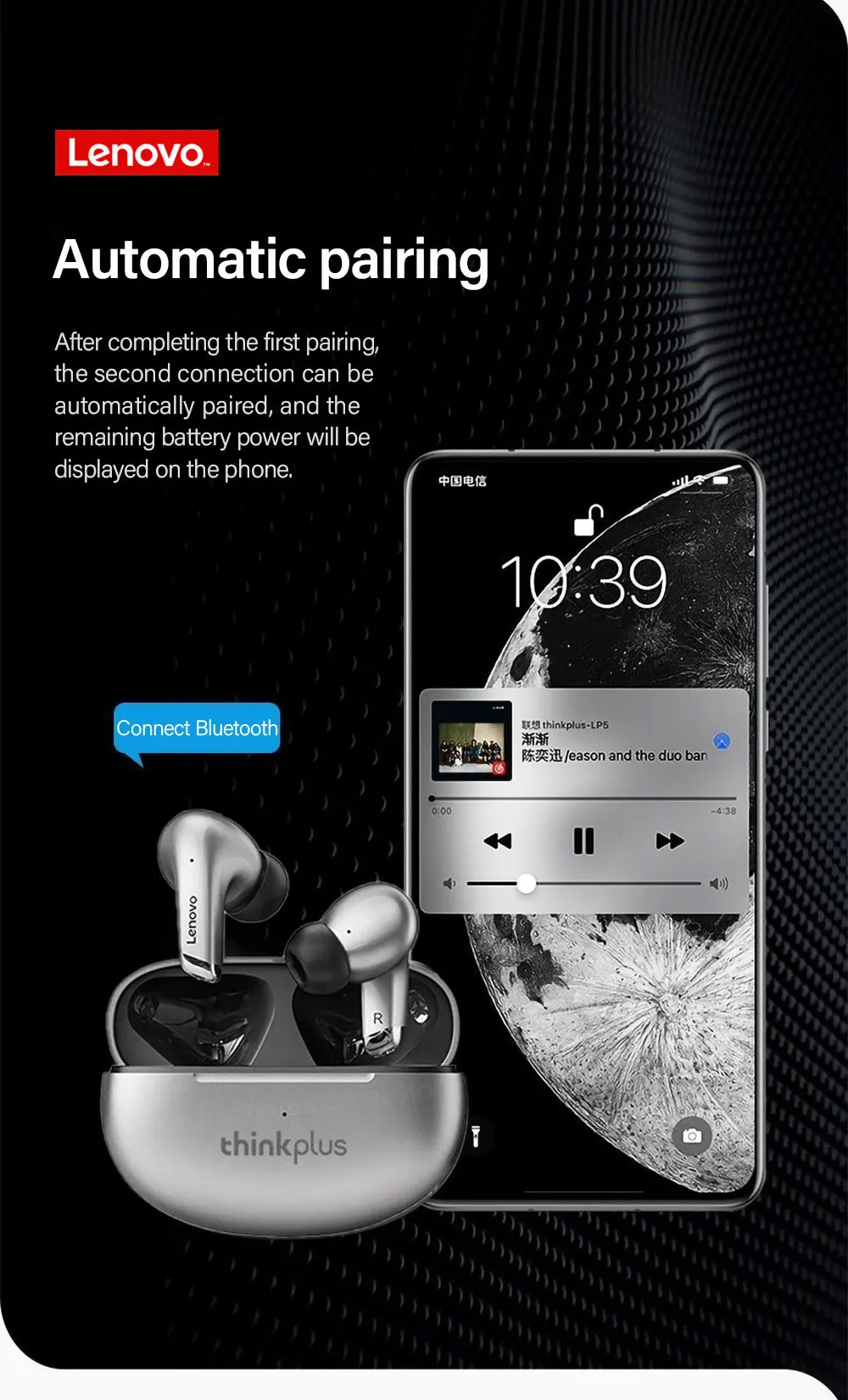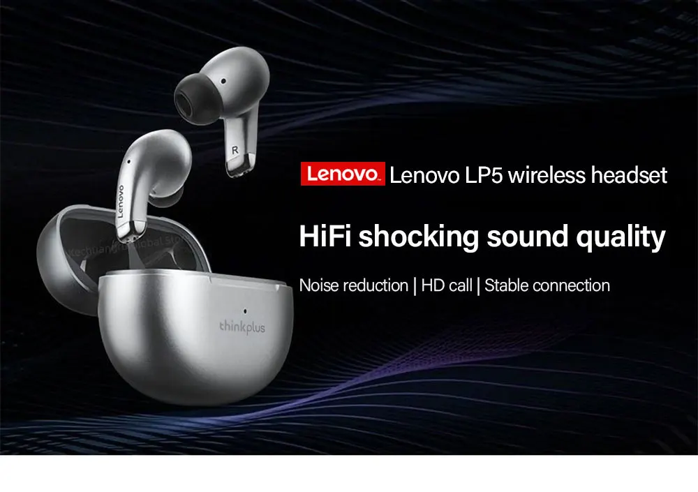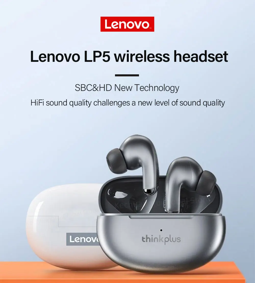 Lenovo LP5 - Auriculares inalámbricos Bluetooth 100% originales (2 unidades) / Lenovo LP5 HiFi con micrófono para música, deportivos