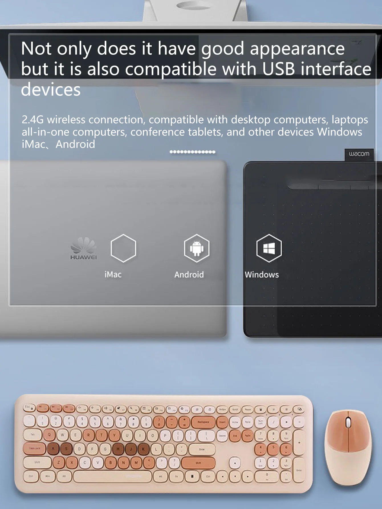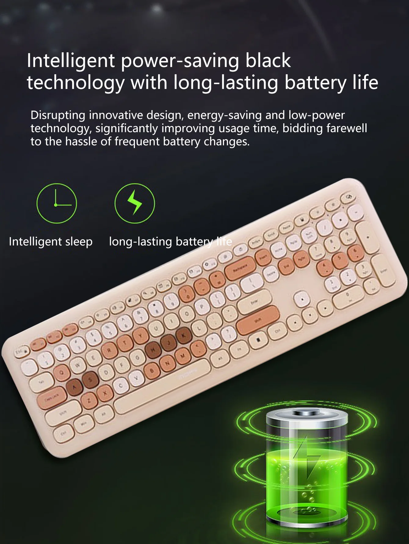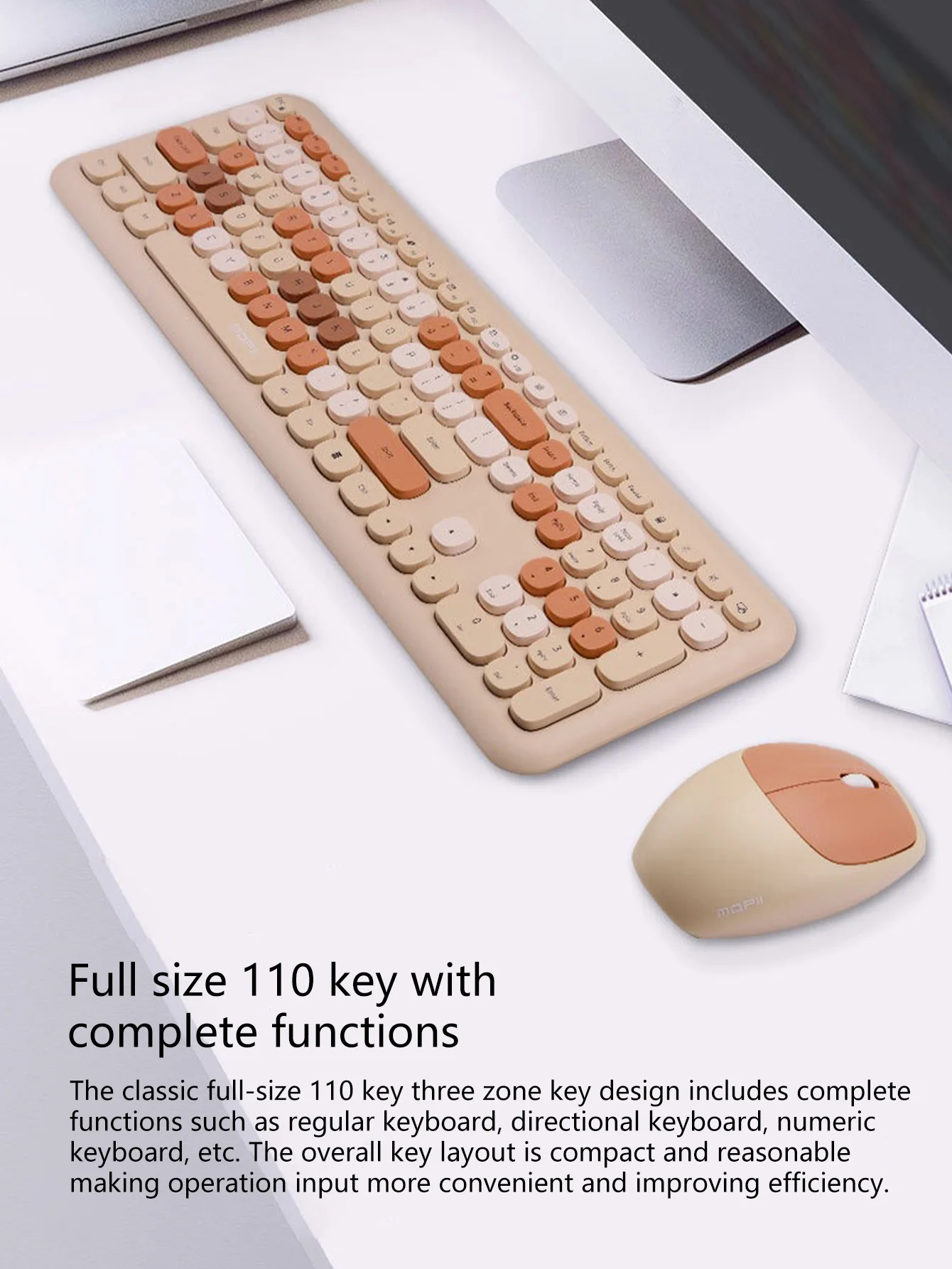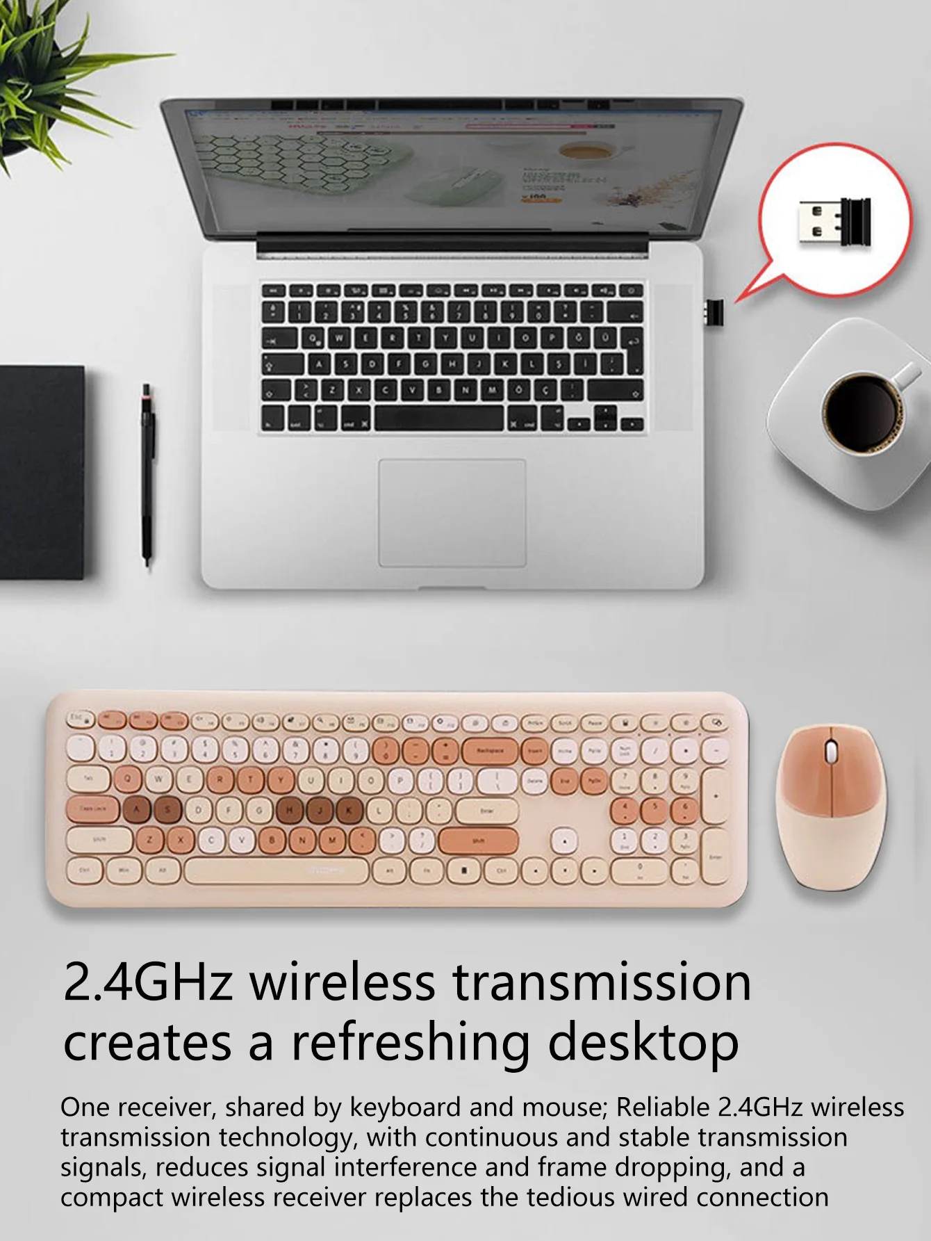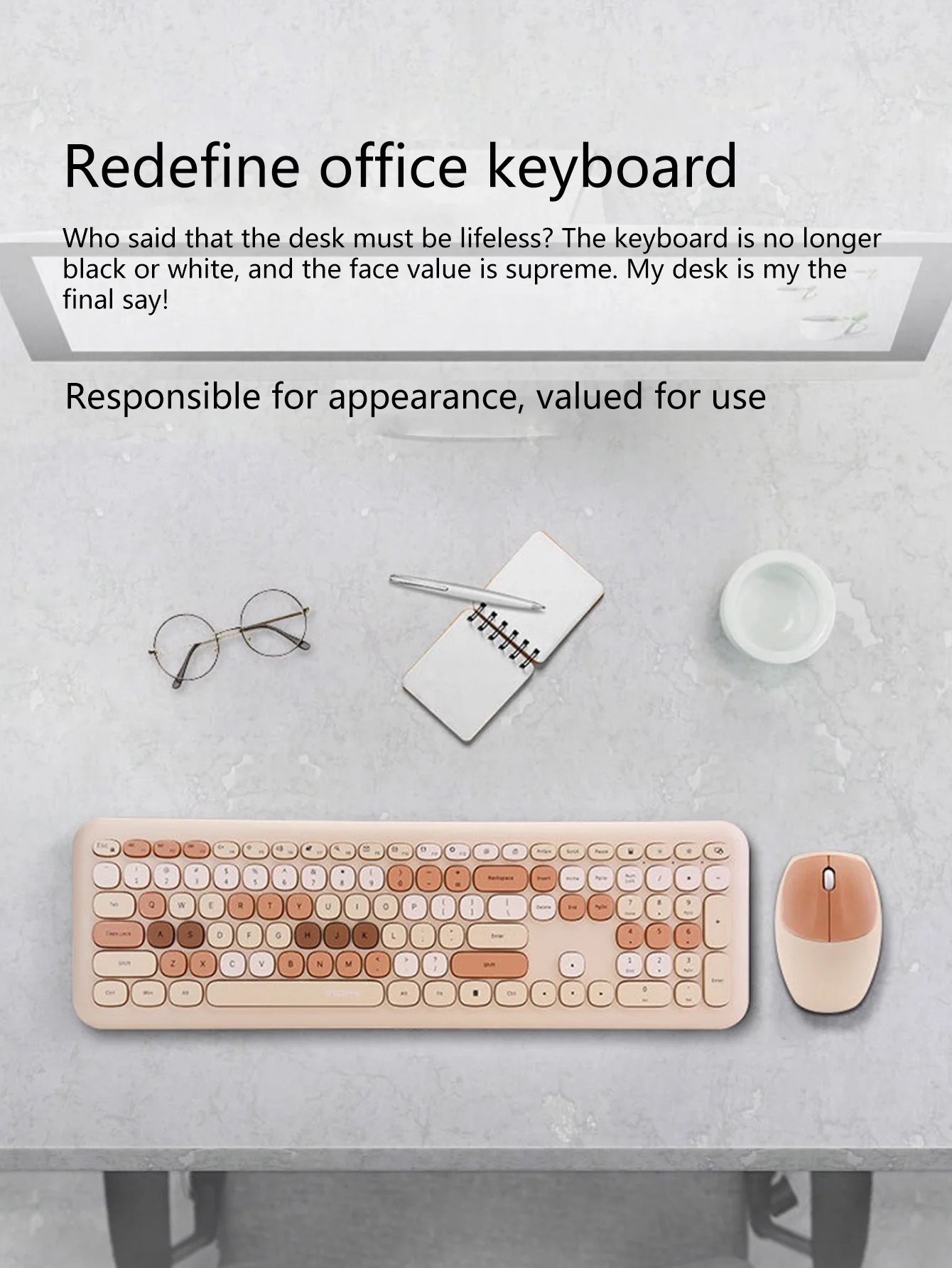 Juego de teclado y mouse inalámbricos a color de 110 teclas, con teclas silenciosas que reducen el ruido, adecuado para computadoras portátiles y de escritorio.