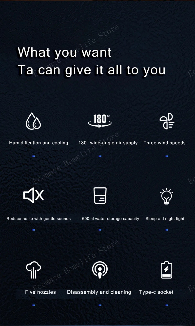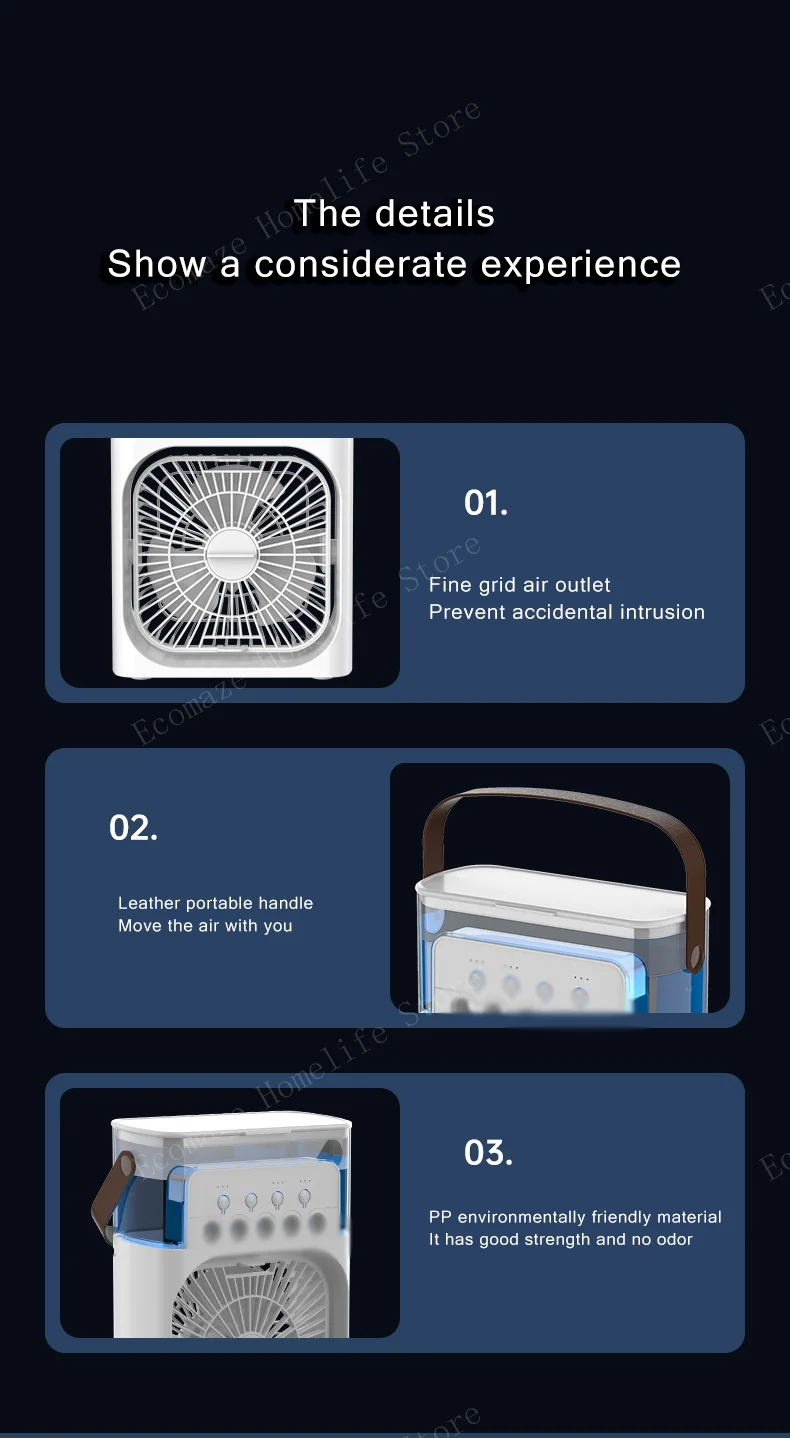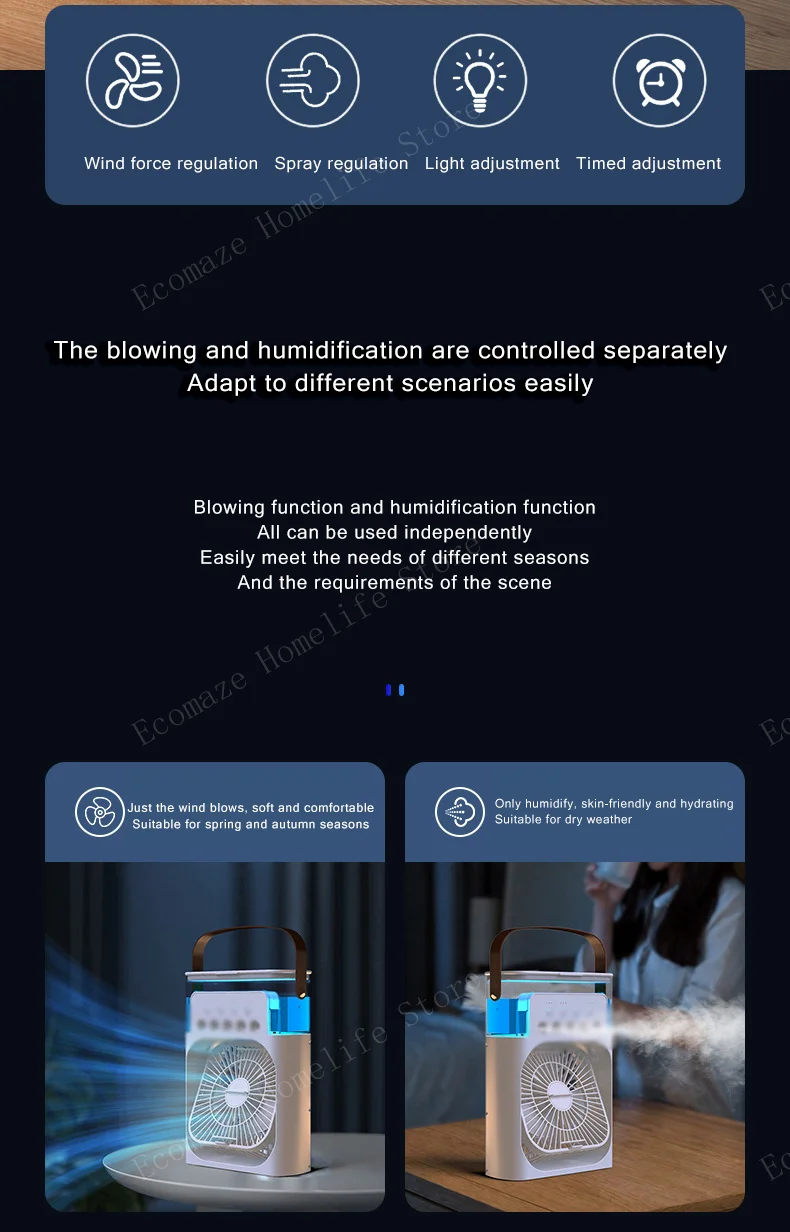Aire acondicionado portátil 3 en 1 Xiaomi con luz LED nocturna, minihumidificador para el hogar, refrigerador de aire, ventilador ajustable para oficina y hogar.