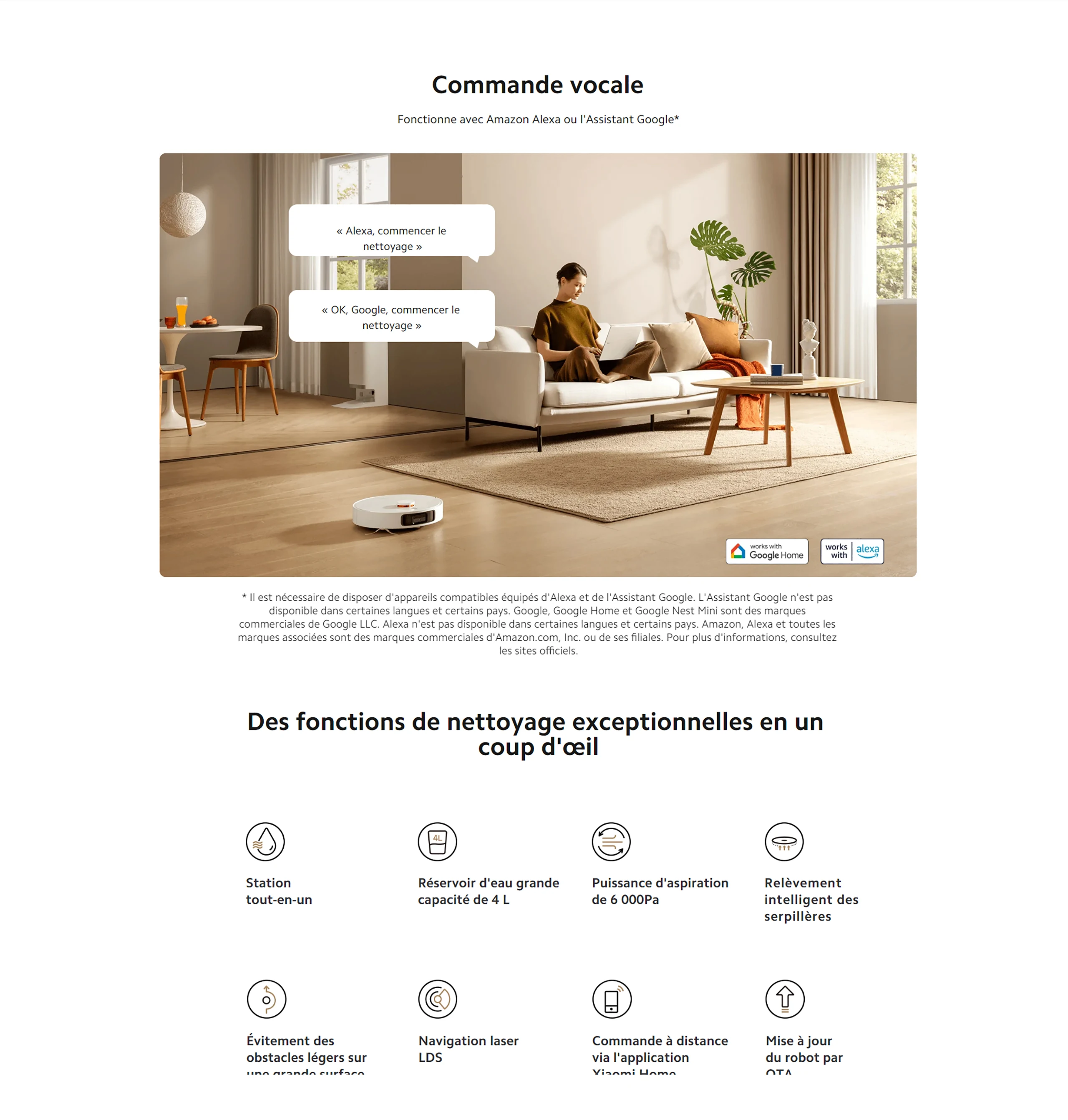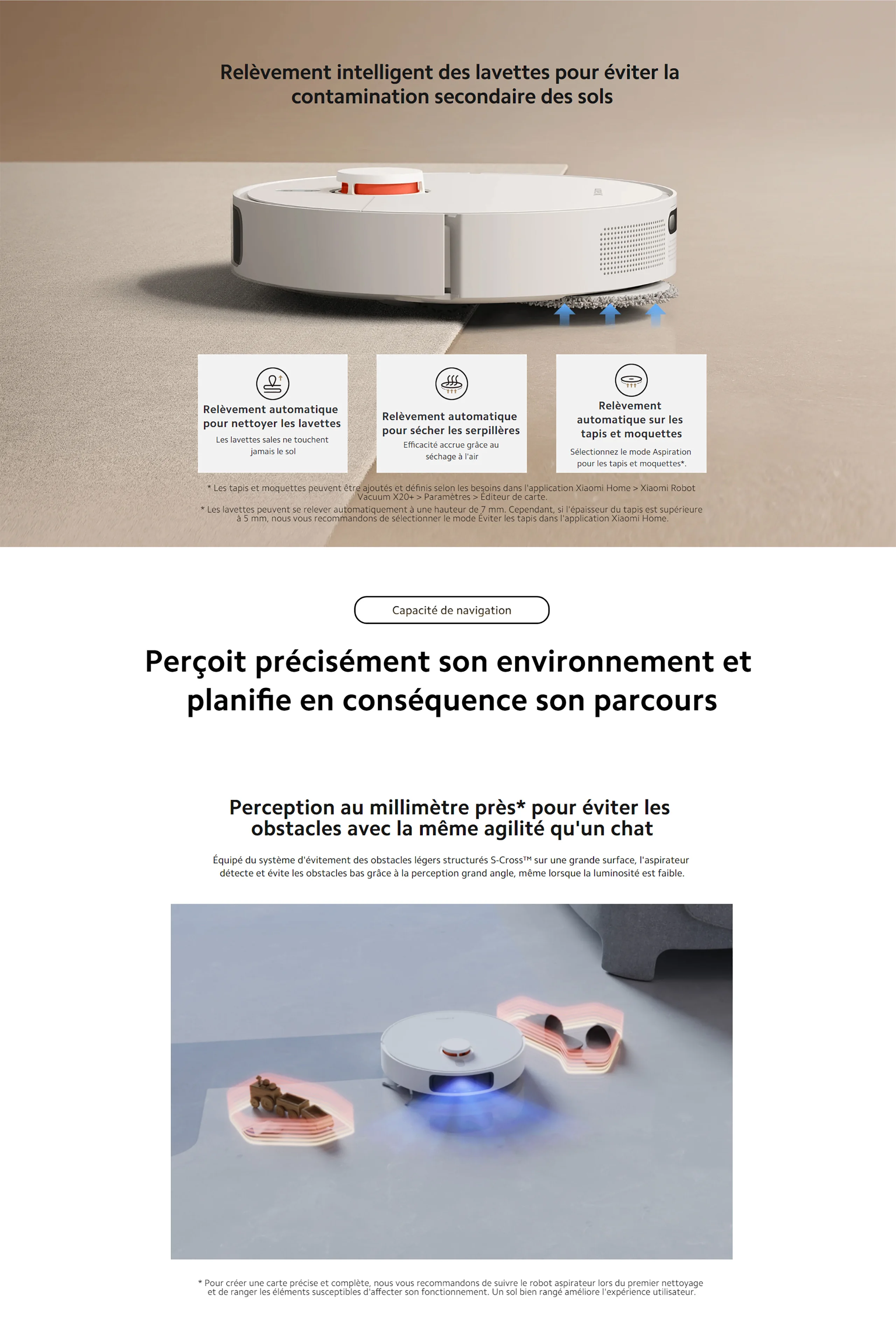 Xiaomi Francia | Xiaomi Robot Vacuum X20+, recoge polvo automáticamente en 10 segundos, potente aspiración de 6.000 Pa, lavado rotatorio de alta velocidad, control remoto a través de la aplicación Xiaomi Home