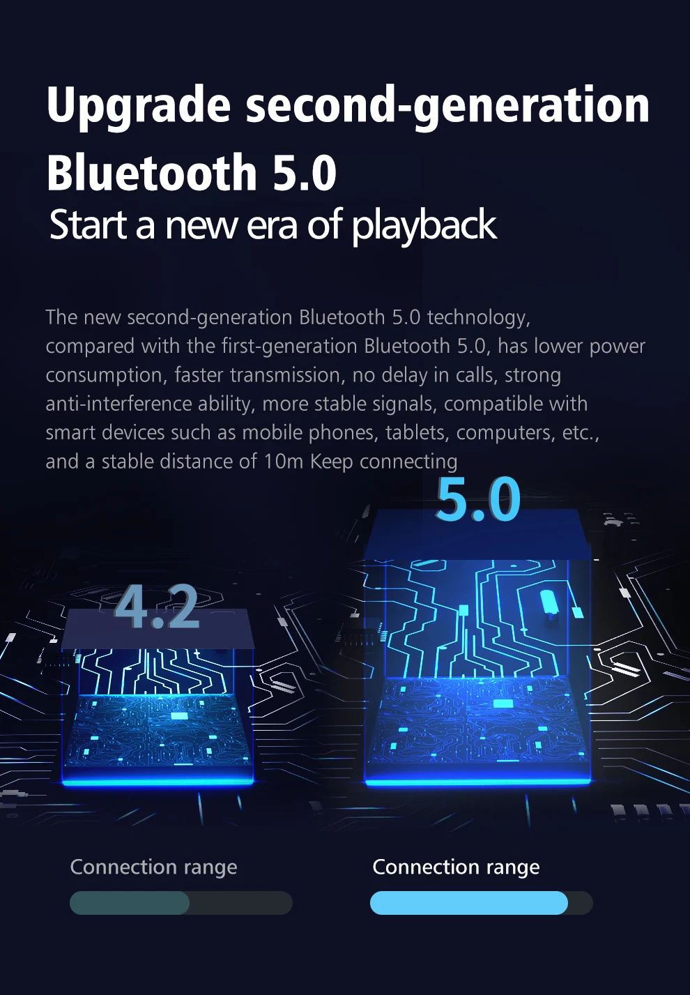 ¿Aún estás preocupado? - La mejor tecnología Bluetooth 5.0, hasta 100 pies de alcance de conexión