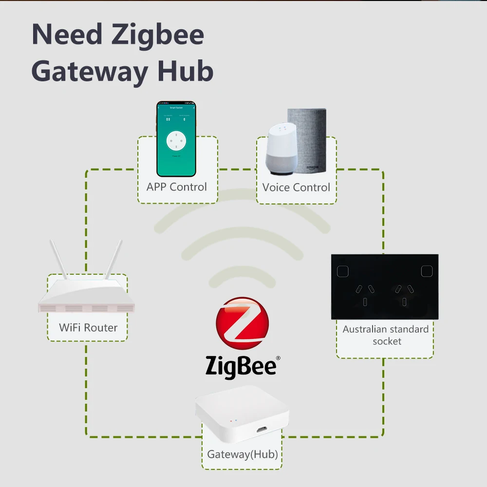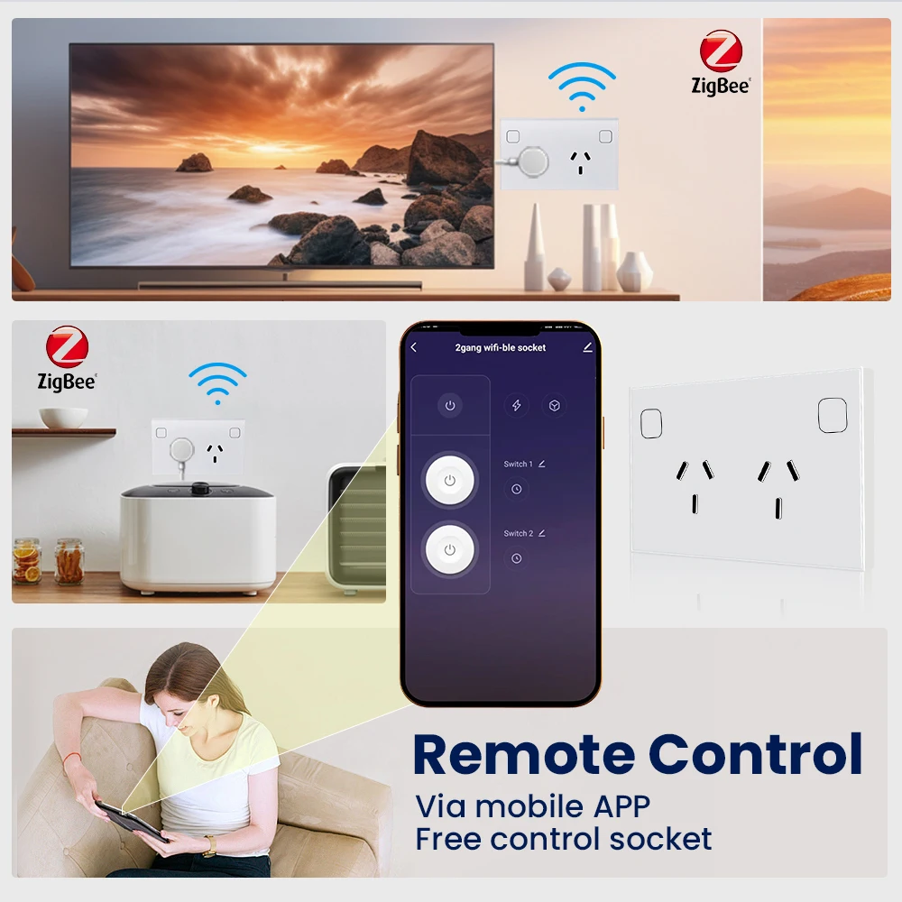 Enchufe de pared inteligente ZigBee Tuya AU NZ ARG, toma de corriente, interruptor táctil, control remoto inalámbrico por Alexa y Google Home
