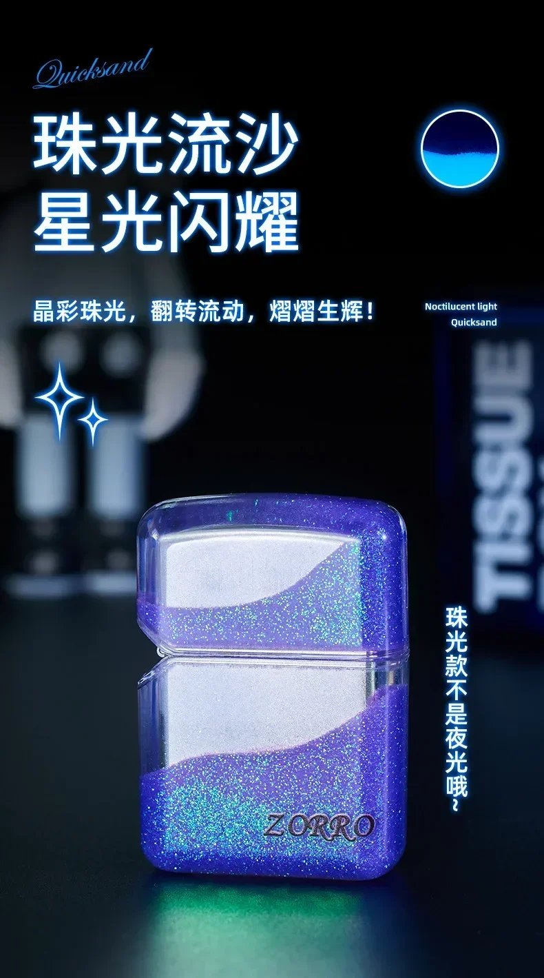 ZORRO Luminous Quicksand Cool Kerosene Lighter Creative Personality Old-fashioned Grinding Wheel Ignition Kerosene Lighter Gift
