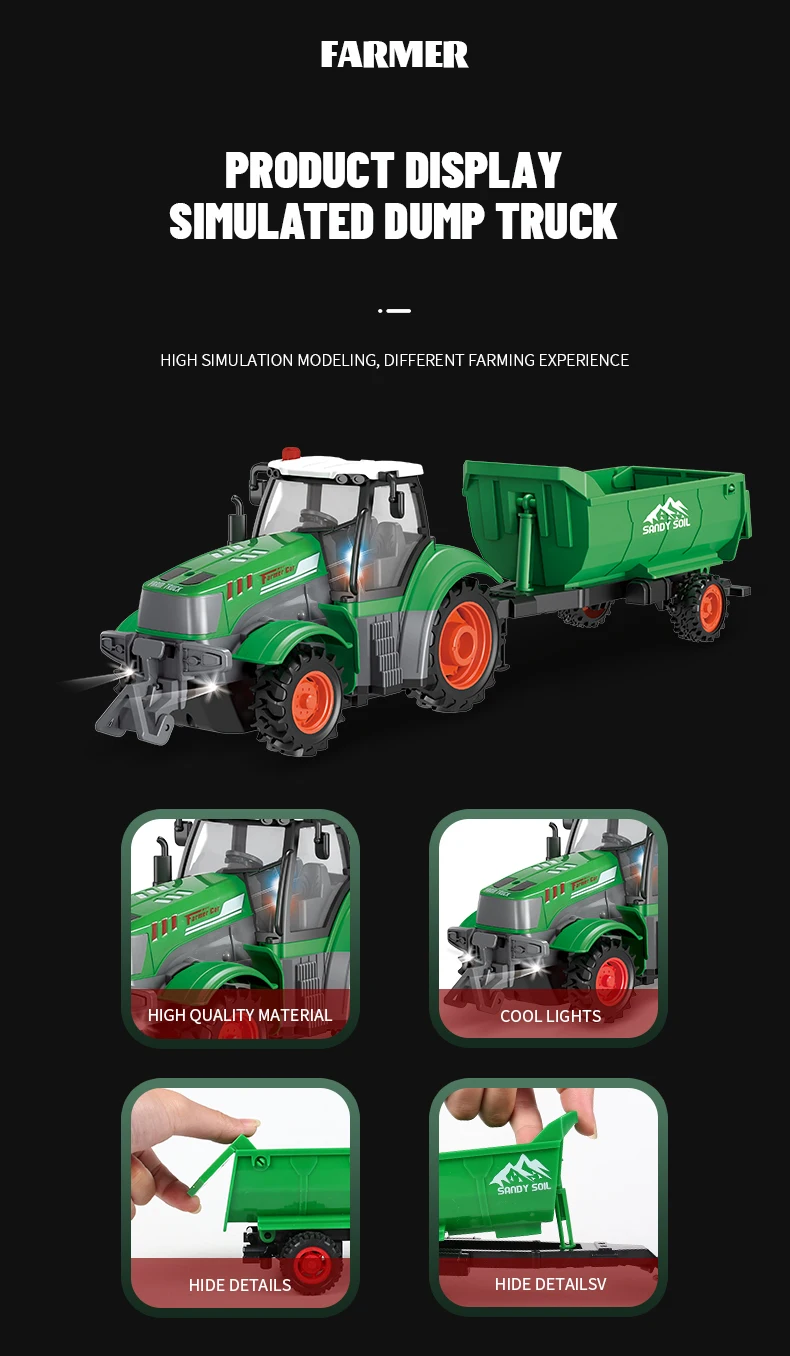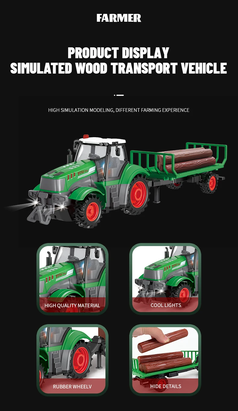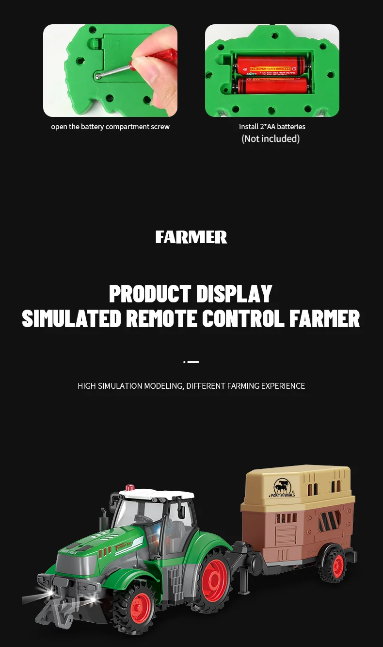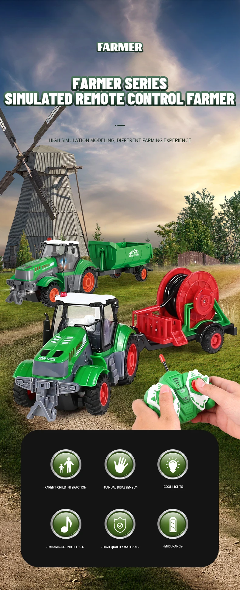 1/24 4Ch Rc Car with Light Remote Control Farmer Vehicle Simulated Electric Model Toys Engineering Vehicle Children Boys Gift