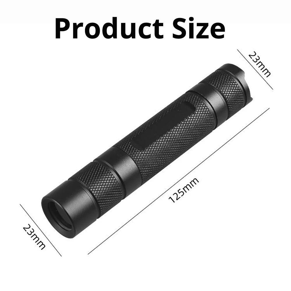 Super mini size, UV Flashlight. Skid-proof design & waterproof design. Adjustable focus range for different usage, stretching to adjust its focus. Clip for convenience carry. Working voltage is wide and can utilize the batteries in the largest extent. Suitable for hunting, cycling, climbing, camping and outdoor activity etc.