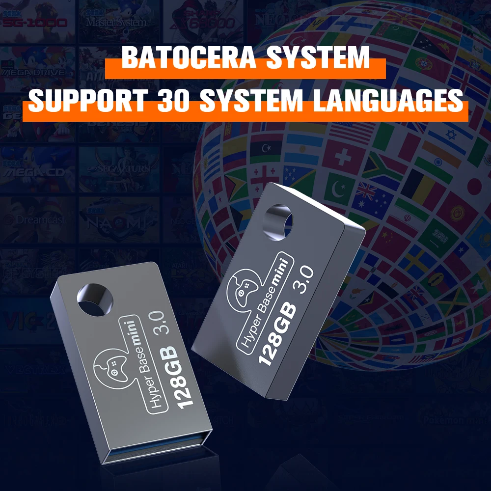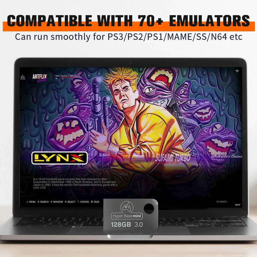 128GB Portable USB 3.0 Disk Latest Batocera 37.Linux System Game Player with 43000+ Games 70+Emulators for PS3/PS2/XBOX/Wii/MAME