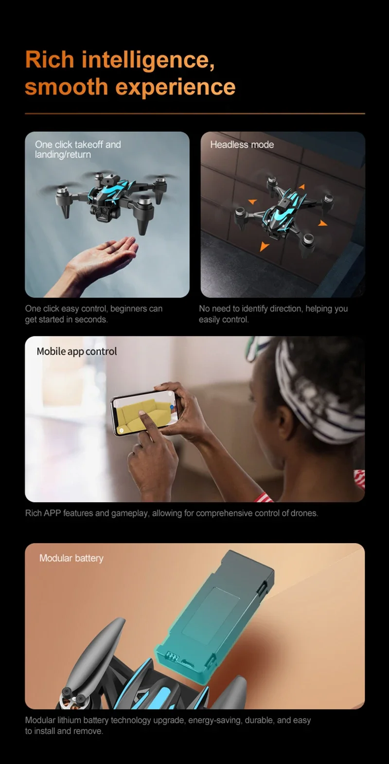 Speed switch, mobile phone control, one landing, one takeoff, one key landing