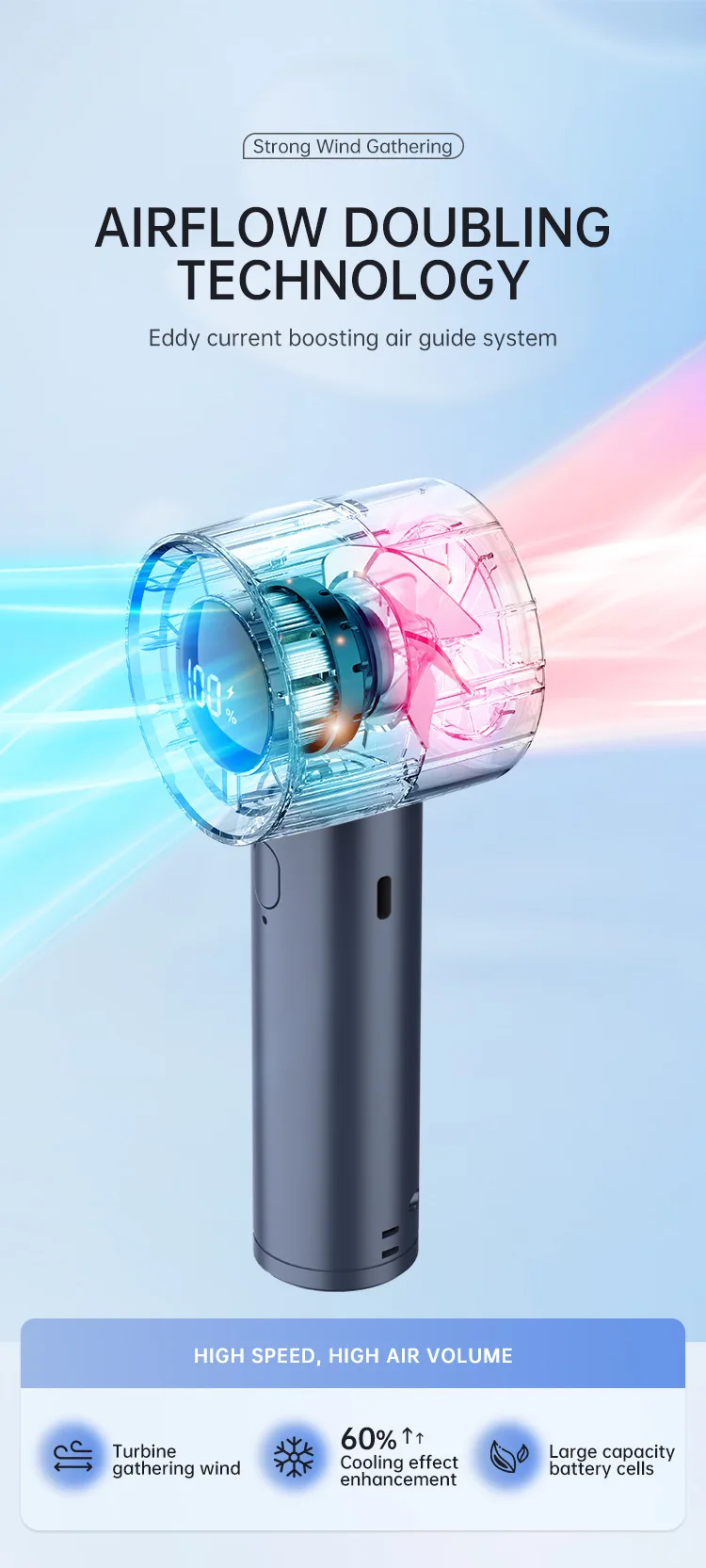 Xiaomi Portable Ice Cooling Mini Handheld Fan 100 Speeds Powerful Fan High-speed USB Rechargeable Cooler with Phone Stand 2025