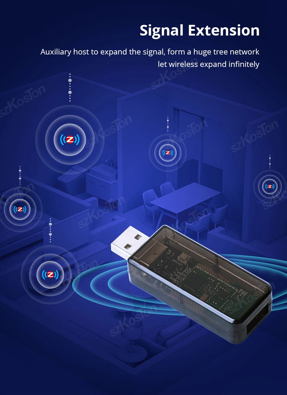 1.Low-cost ZigBee Signal Solution:Small USB mini design ensures its low cost but functional feature,performing well to solve the distance problem among ZigBee smart devices by transmitting stable ZigBee signal,which effectively solves the controlling problem caused by blocked signal under one ZigBee hub only for various devices over long distance.