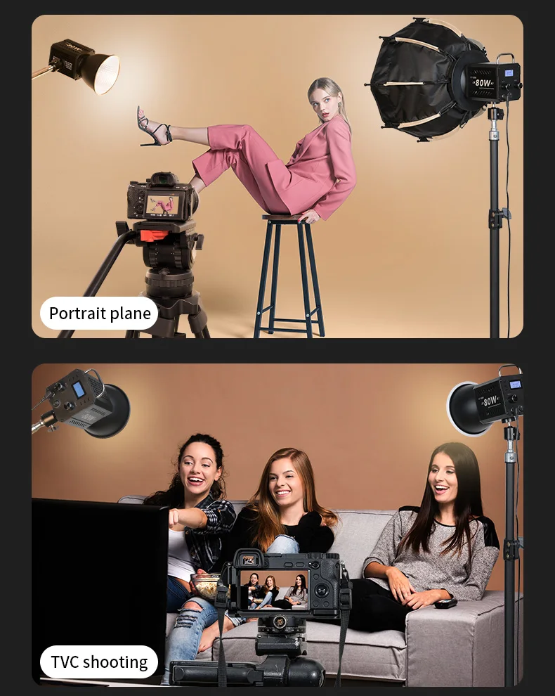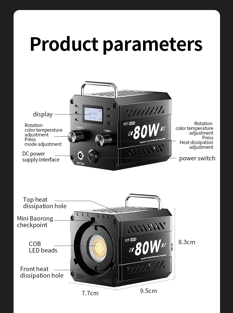 80w Photo Studio Light COB Bi-Color CCT 2500-8500K CRI≥95 TLCI≥97 With diffuser LED Video Lights Vlog Shoot Fill Lighting