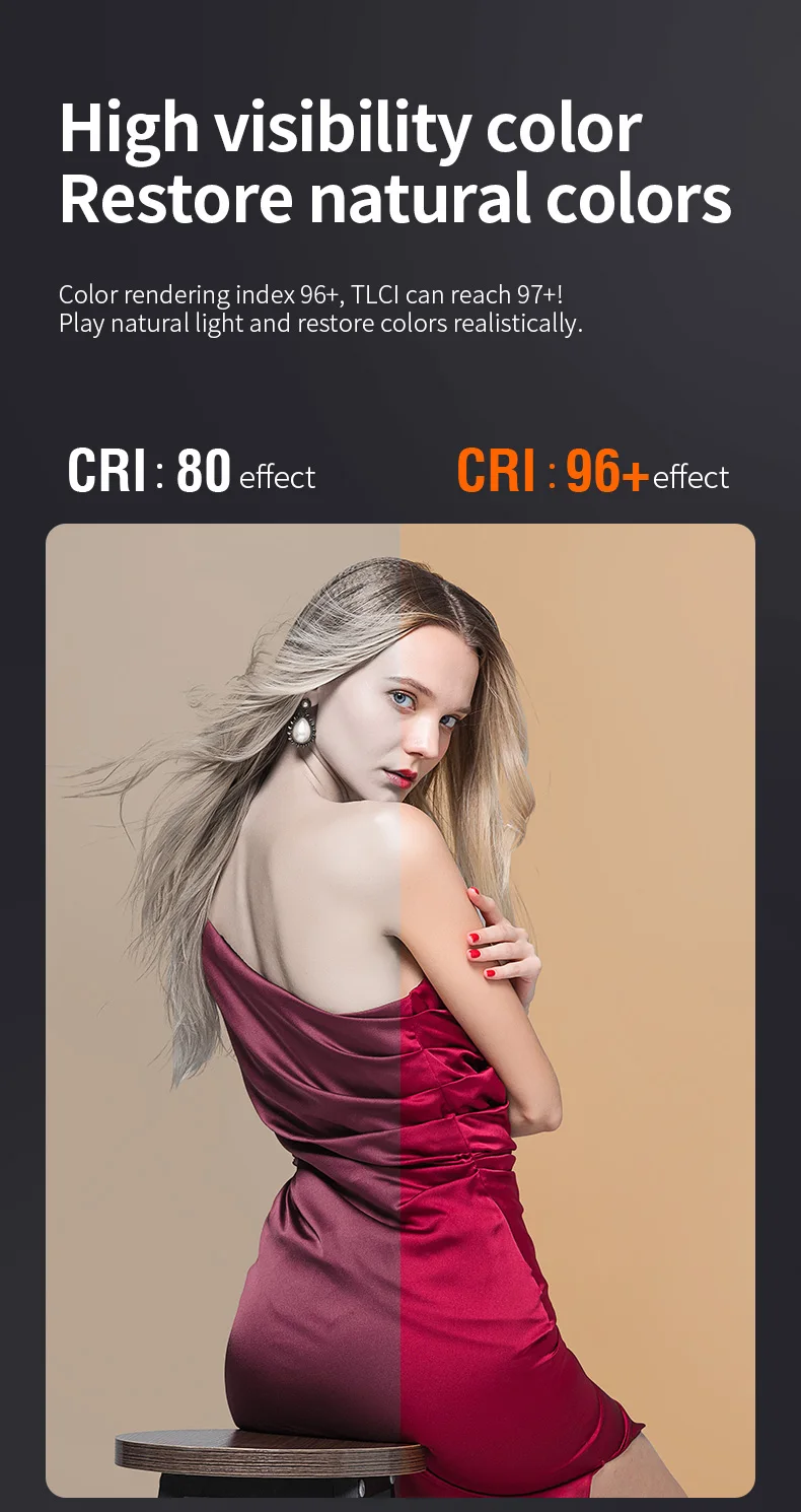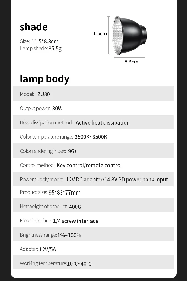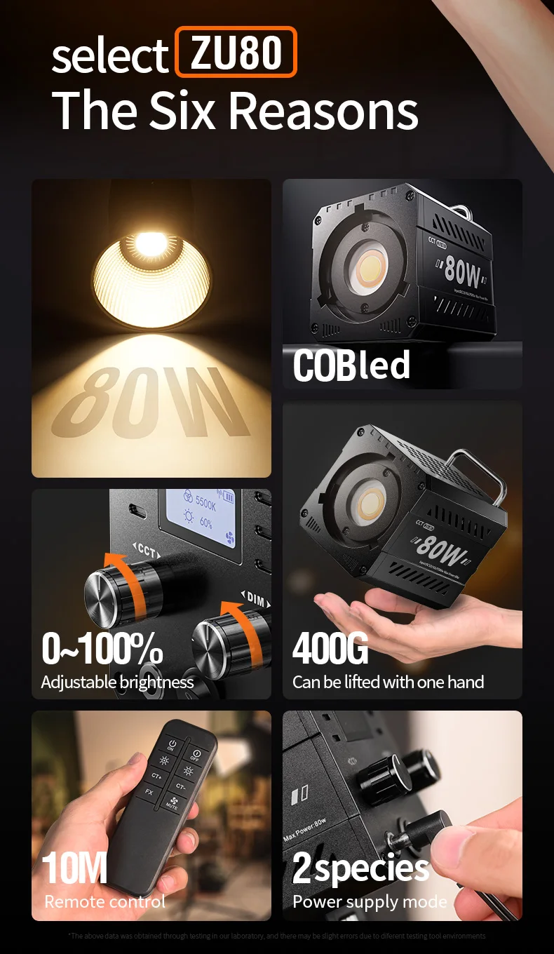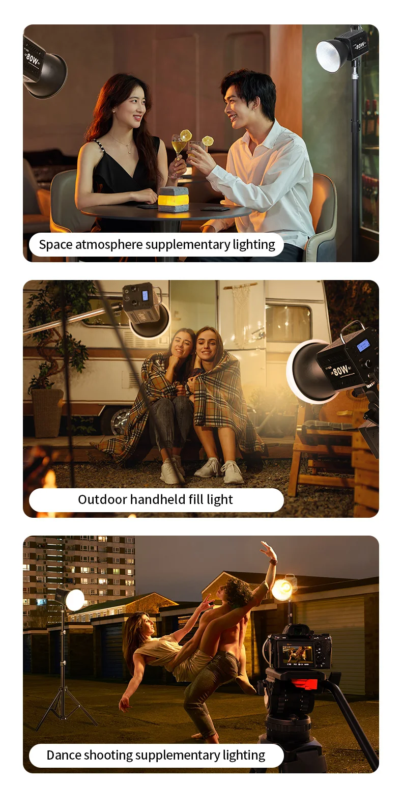 ZU80/ZU60 Photo Studio Light COB Bi-Color 2500-8500K CRI≥95 TLCI≥97 With Diffuser LED Video Lights Fill Lighting