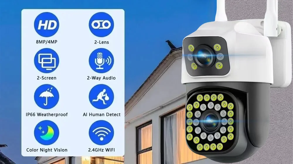 4K 8MP WiFi Surveillance Camera Wifi Outdoor Dual Lens PTZ IP Camera Auto Tracking Audio Video ONVIF Security CCTV Camera YOOSEE
