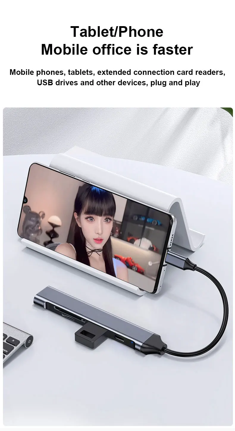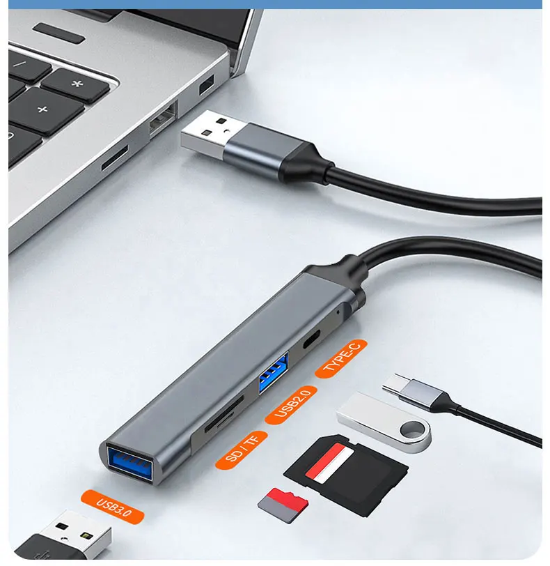 [5-in-1 USB Hub] 5-in-1 Hub with USB Converter | Supports OTG + Phone, Computer, Laptop, USB Flash Drive, SD Card Data Transfer