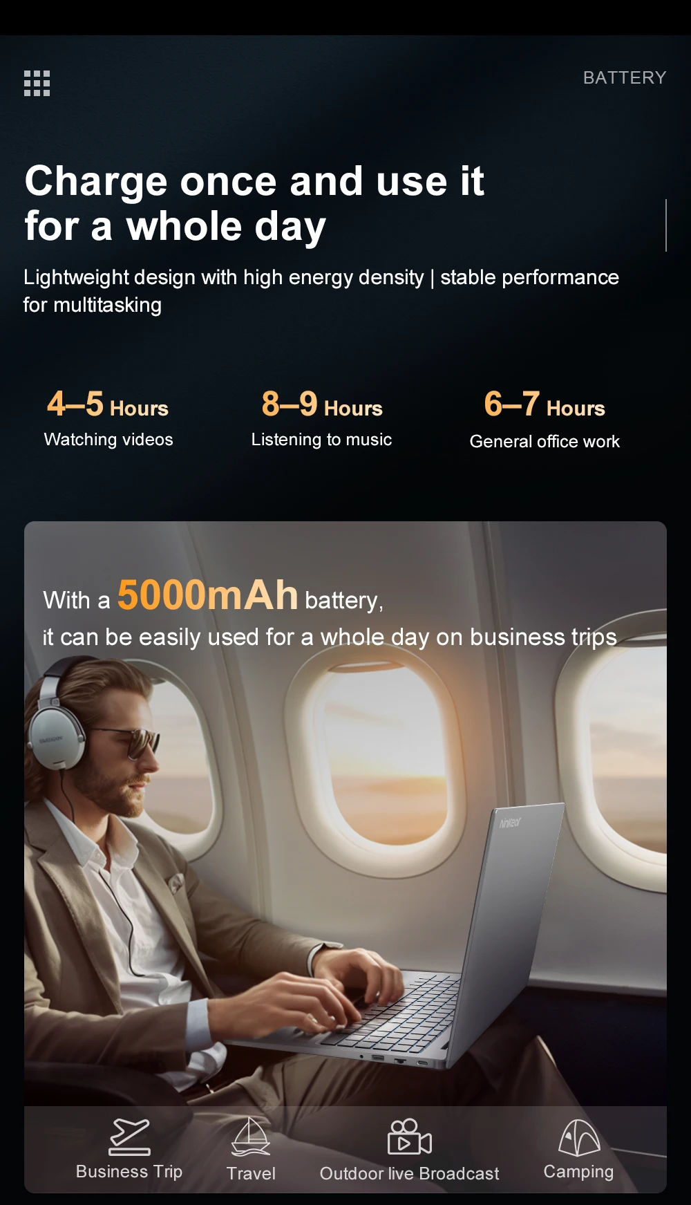 Battery Capacity(mAh): 11.55V/5500mAh, 57.75WH