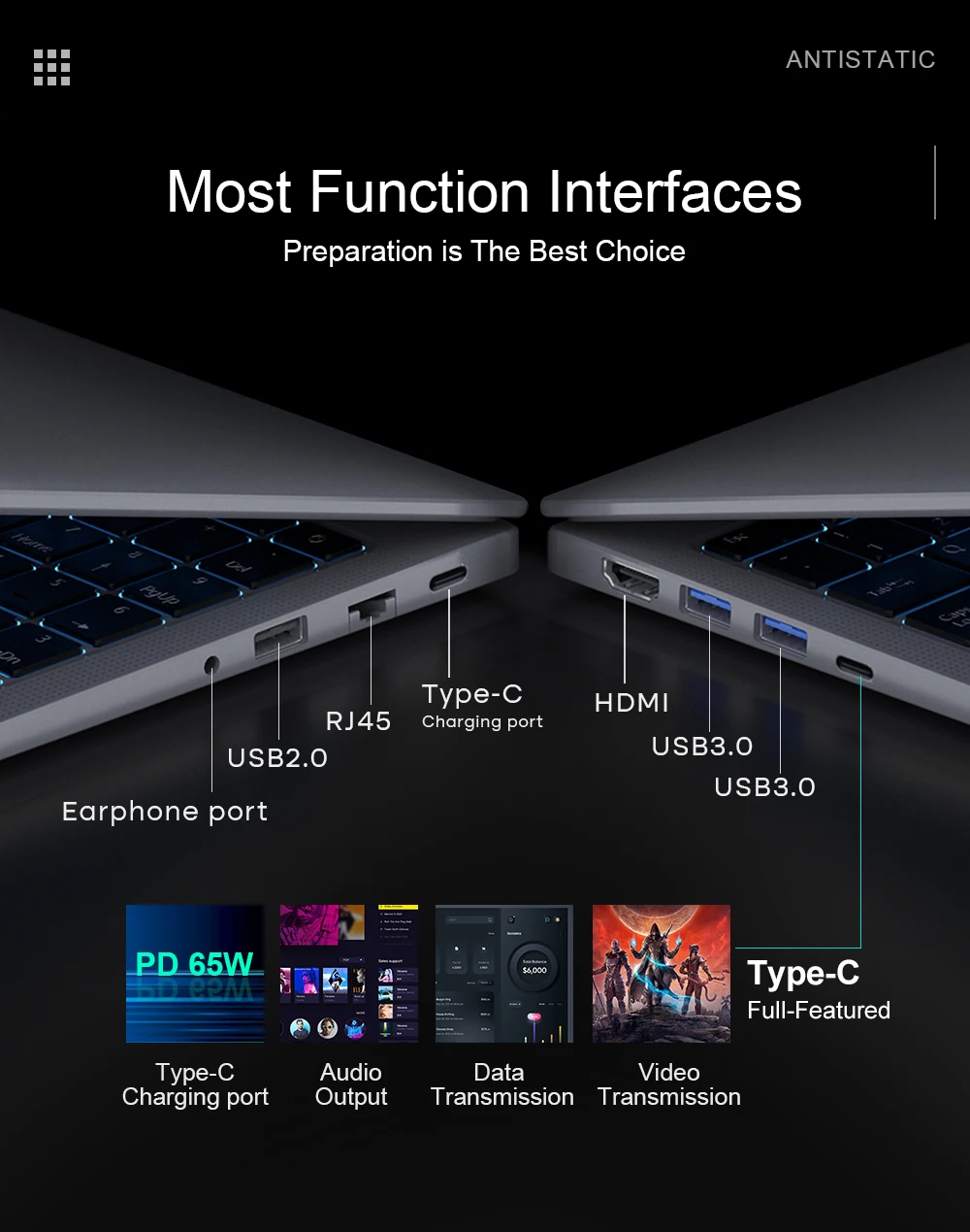 Port: 3.5 mm Mic Jack,1*USB3.1 Type-C,2*USB3.0,1*USB2.0,HDMI-Compatible