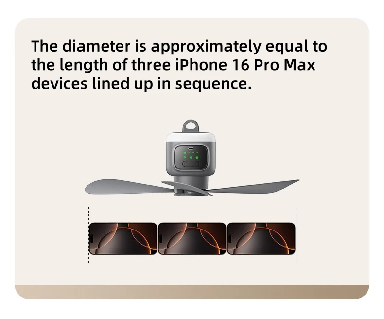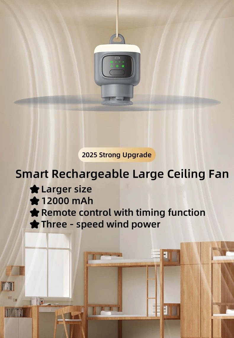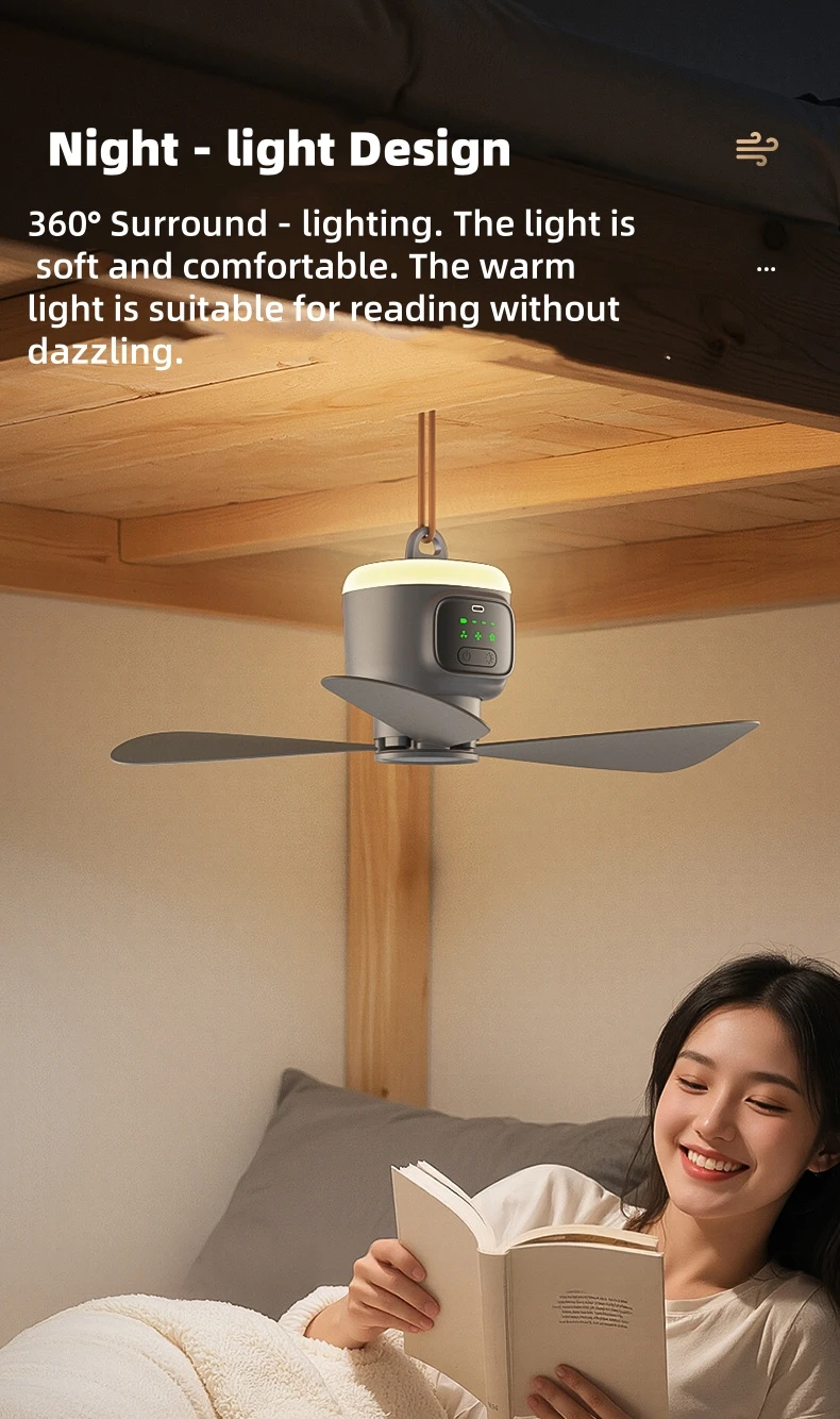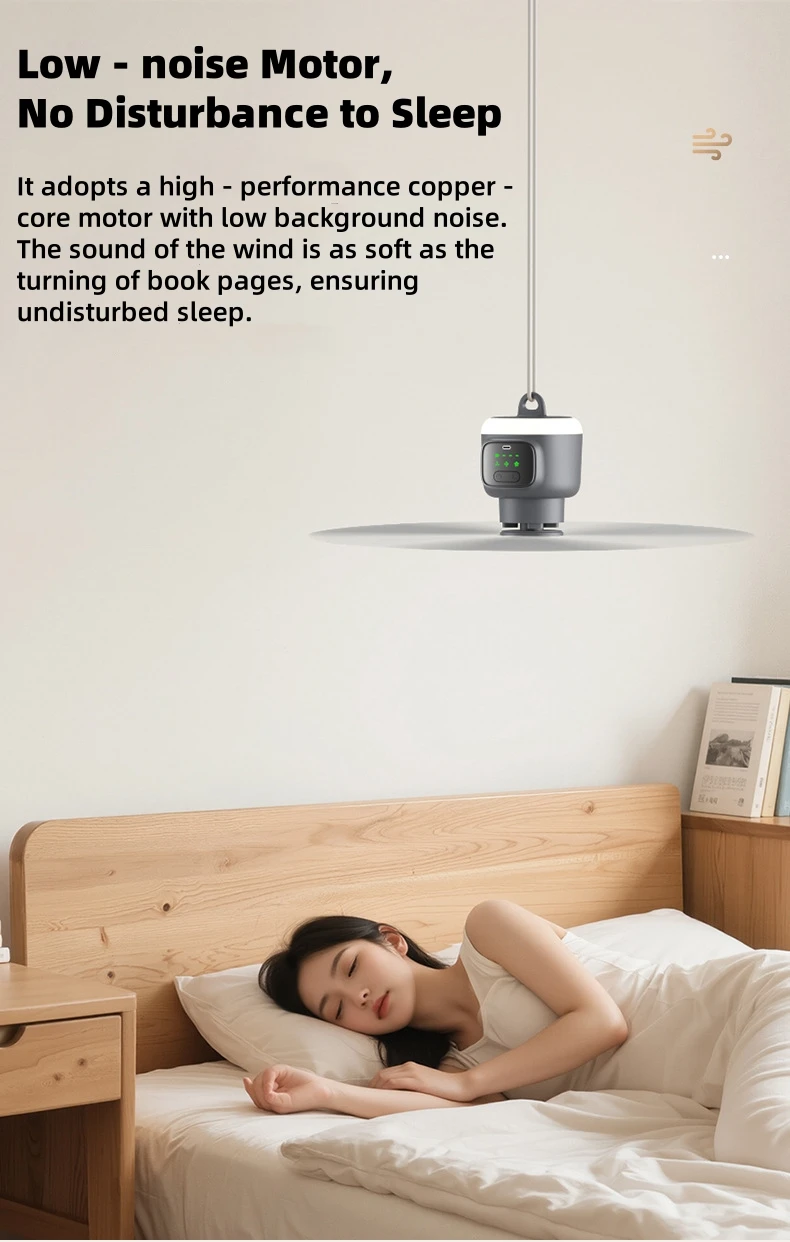 【12000mAh Ultra Long Battery Life】This ceiling fan has a large battery capacity of 12000mAh and a long battery life of 30H. It is the best choice for camping.