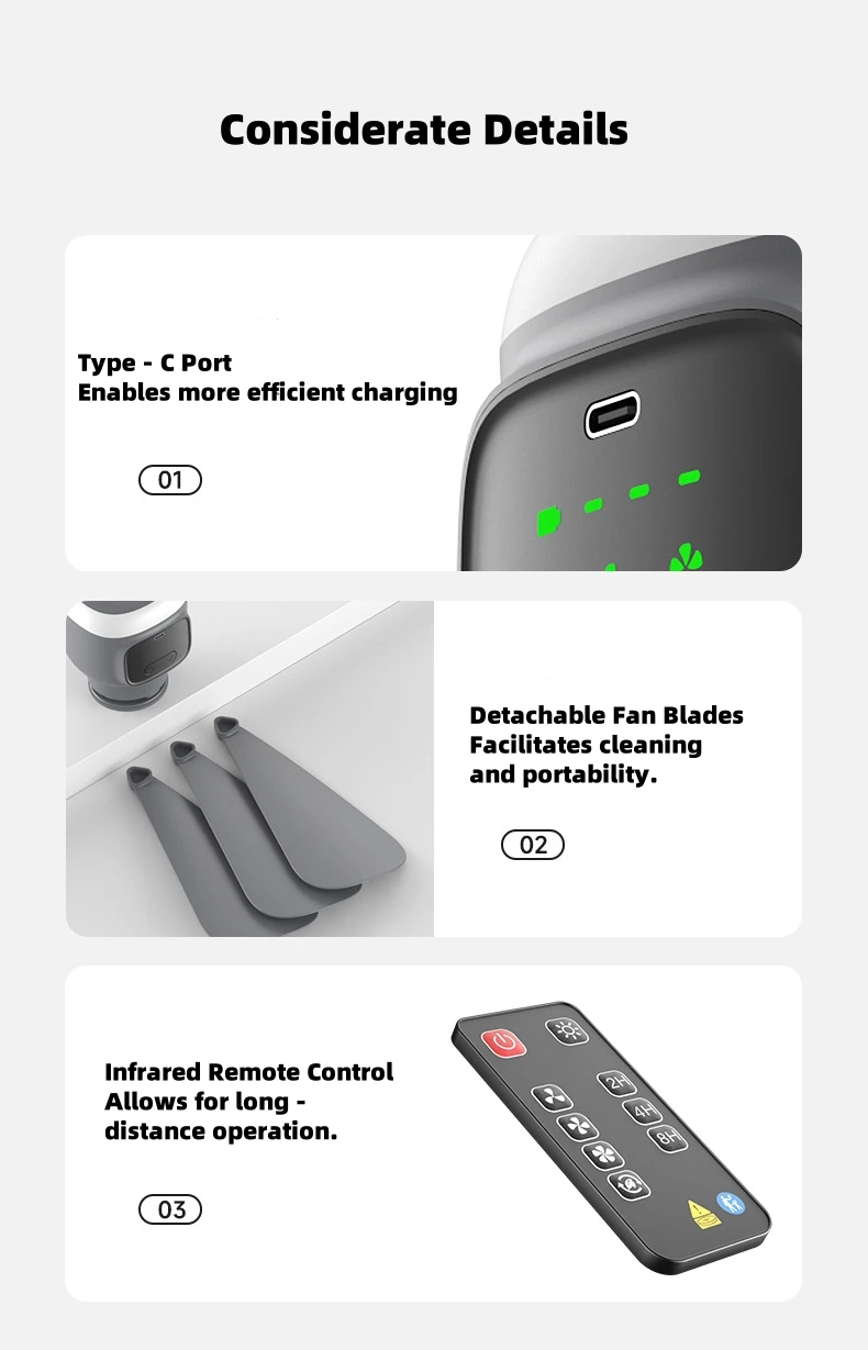 【Removable Fan Blades】This fan adopts a detachable blade design, making cleaning and carrying simple and convenient, suitable for multiple scenarios such as living rooms, bedrooms, camping, etc.