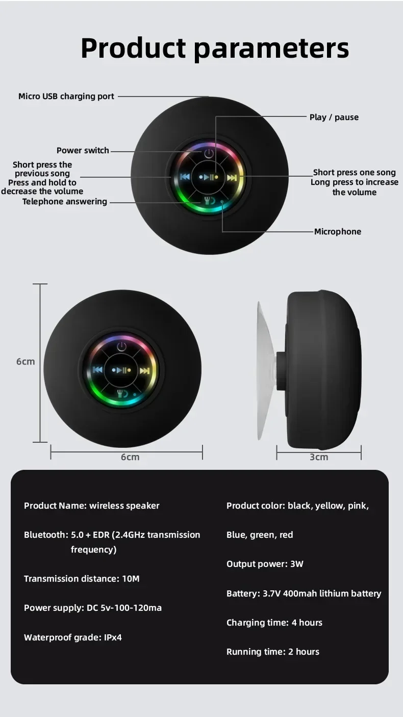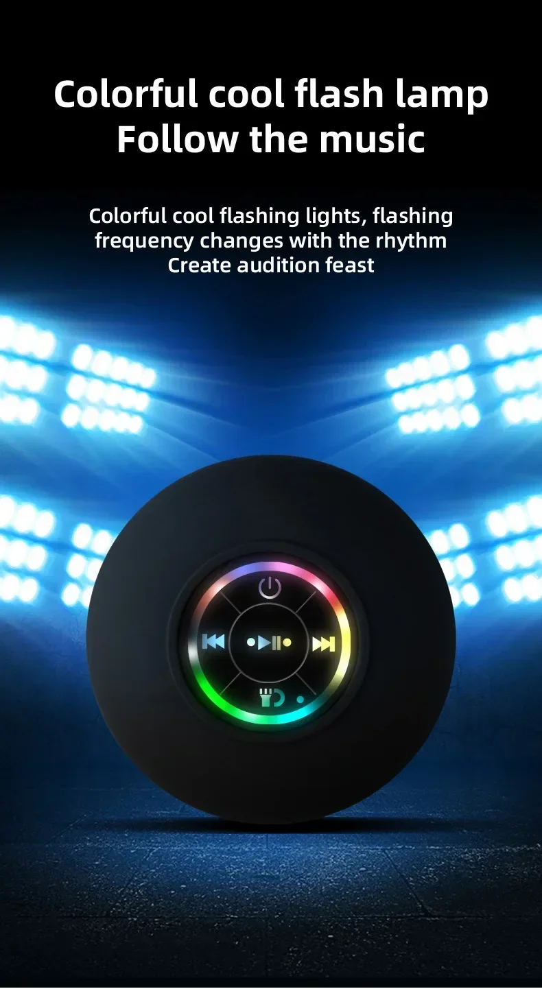 XIKCU Bathroom Waterproof Wireless LED Bluetooth Speaker Large Suction Cup Mini Portable Speaker Outdoor Sports Stereo Speaker